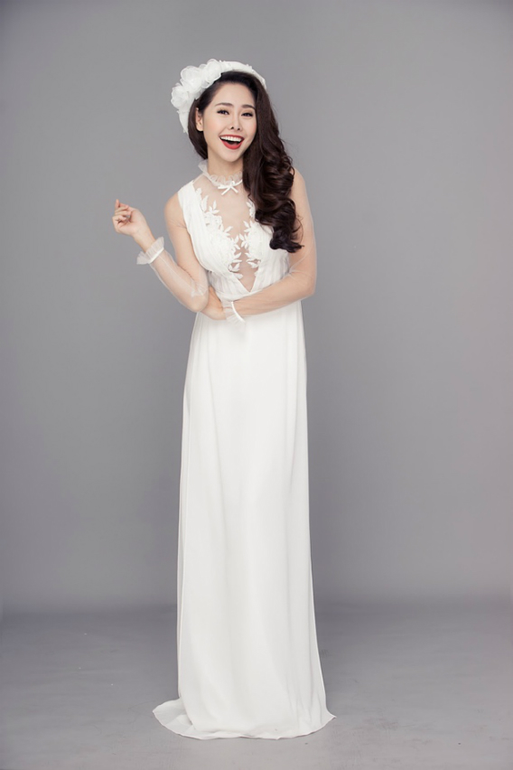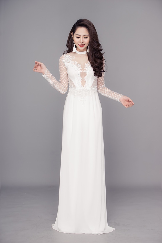Các thiết kế trong bộ sưu tập áo dài mà Tường Vi diện hướng đến sự đơn giản và mới mẻ, với chất liệu ren thêu cao cấp được đính kết tỉ mỉ trên thân áo.