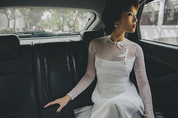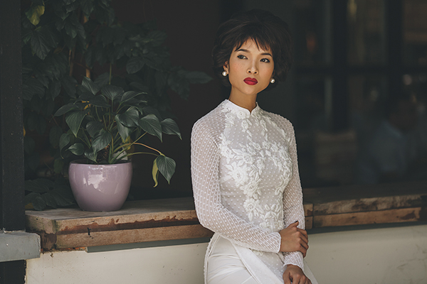 Bằng Lăng hoá cô dâu cổ điển với áo dài cưới màu trắng