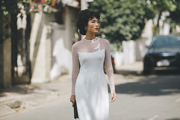 Những mẫu áo gợi cảm giác vừa quen vừa lạ, bởi nhà thiết kế vẫn trung thành với các yếu tố truyền thống, nhưng anh cũng khéo léo lồng ghép các chi tiết hiện đại như chất liệu xuyên thấu, cách trang trí, cách dựng cổ áo độc đáo.