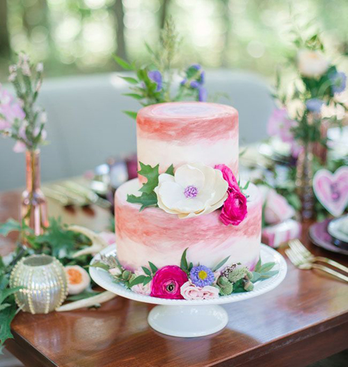 Gam màu hồng nhẹ sẽ làm chiếc bánh ngày cưới thêm lãng mạn. Phong cách này thể hiện nghệ thuật đương đại với sắc màu nhẹ nhàng nhưng thu hút.