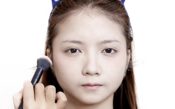 Phủ phấn hightlight lên phần xương chân mày, sống mũi và gò má để bắt sáng.
