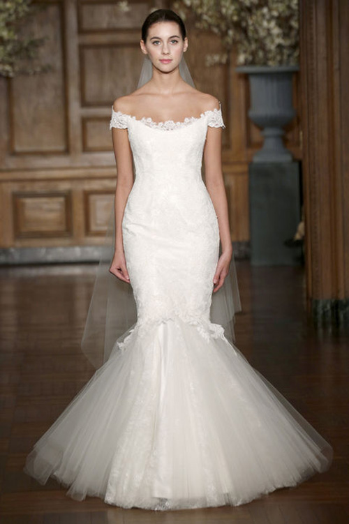 Vòng một khiêm tốn là nỗi sợ hãi và tự ti của không ít tân nương. Để khắc phục nhược điểm này, bạn nên mặc váy cưới vai ngang, vai chờm với họa tiết nổi tạo sự đầy đặn và "giấu" bờ vai nhỏ. Bên cạnh đó, cô dâu có thể lựa chọn những mẫu soiree có nhiều chi tiết rườm rà, cầu kỳ ở phần ngực để tạo cảm giác đầy đặn.