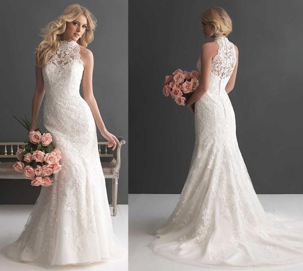 Váy cưới có phần cổ tinh tế sẽ giúp cô dâu khoe khéo vòng ngực gợi cảm hoặc khắc phục nhược điểm số đo khiêm tốn.