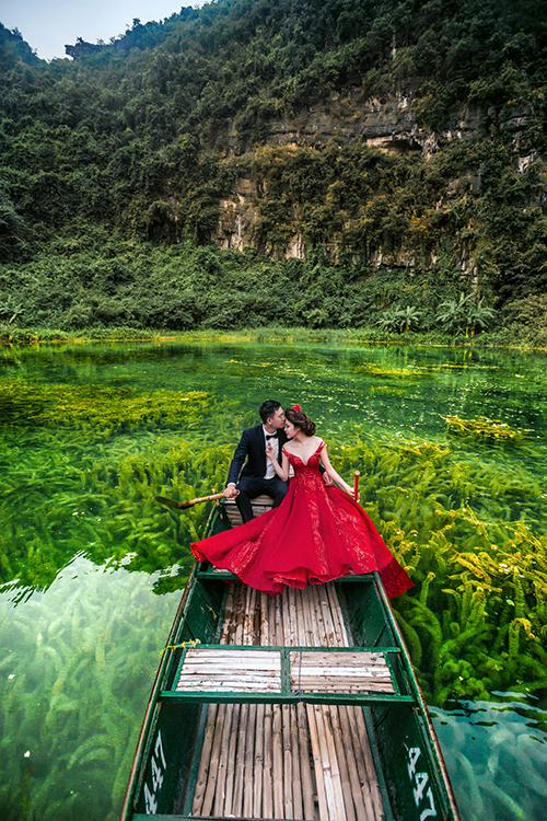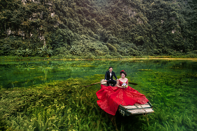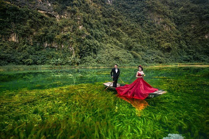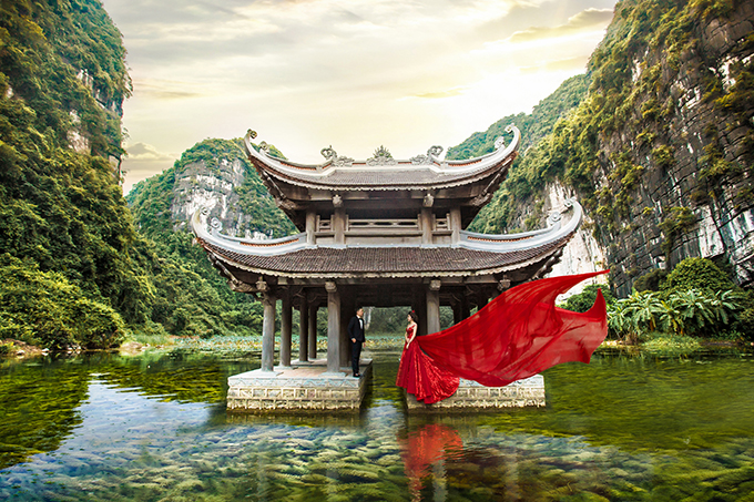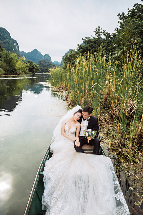 Đôi uyên ương đã chọn Ninh Bình, nơi có cảnh núi non, và sông nước để ghi lại những khoảnh khắc hạnh phúc.