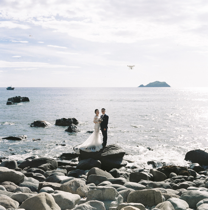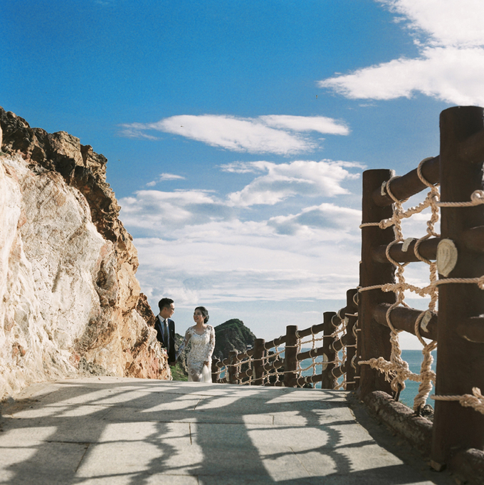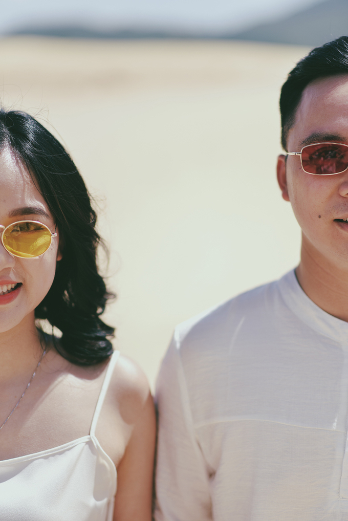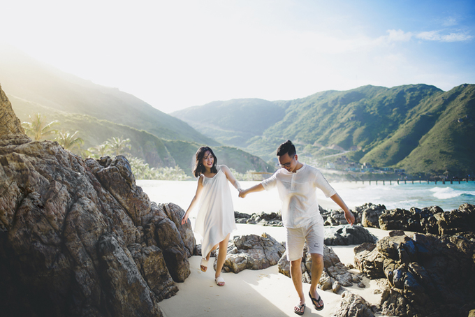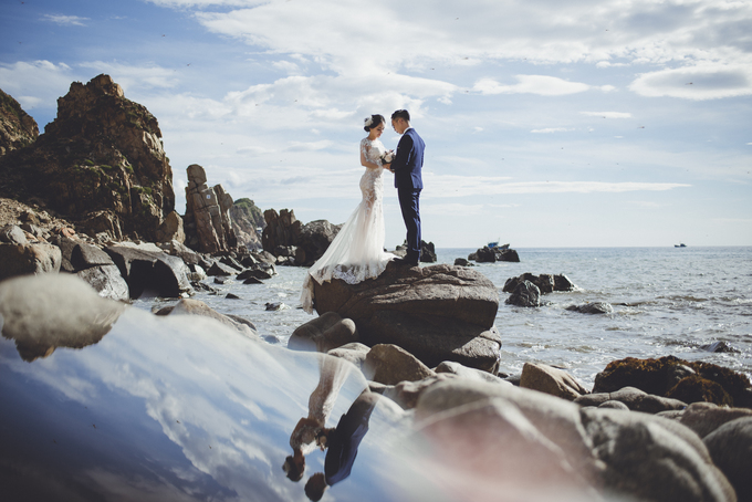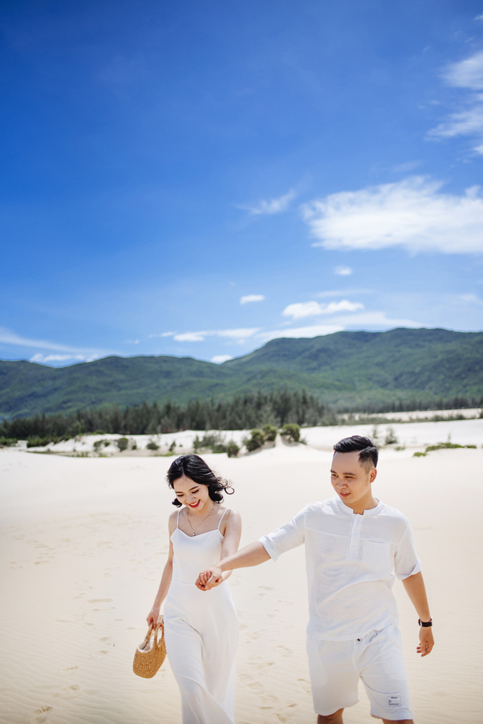 Chủ nhân của bộ hình là Tống Đức Thành (SN 1989) và Phương Chi (SN 1994) làm việc trong lĩnh vực ngân hàng ở Hà Nội. Cặp vợ chồng chọn Quy Nhơn (nơi được mệnh danh là Maldives Việt Nam) cùng Điệp Sơn làm điểm đến cho bộ ảnh cưới vì địa hình đa dạng: eo biển, đảo, bãi cát, núi đá...
