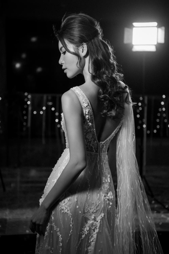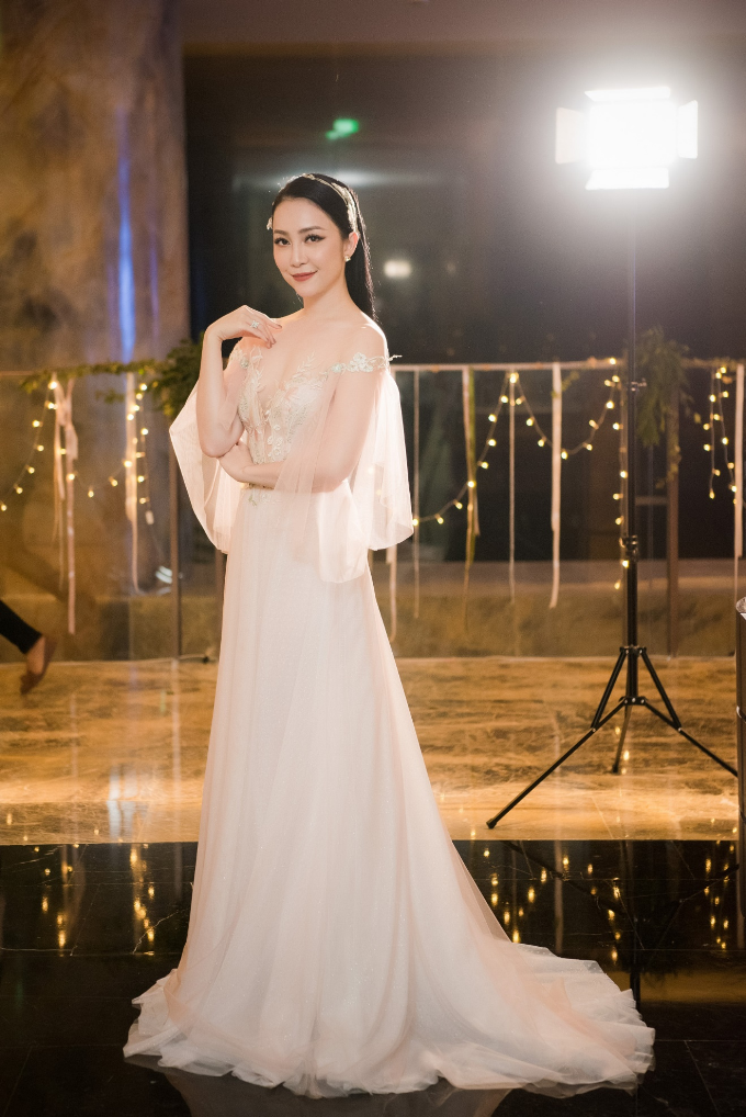 Linh Nga khoe vẻ đẹp yêu kiều, thanh tao trong mẫu váy ren mềm mại được nhà thiết kế Phương Linh sáng tạo riêng.