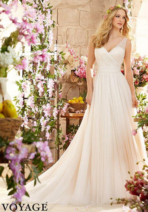 Khắc phục: Váy cưới cổ chữ V với dây váy to bản