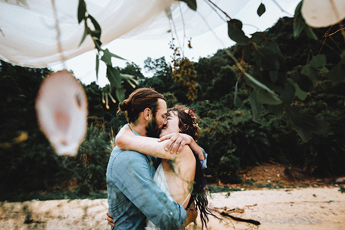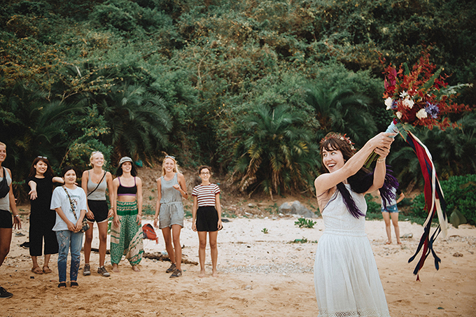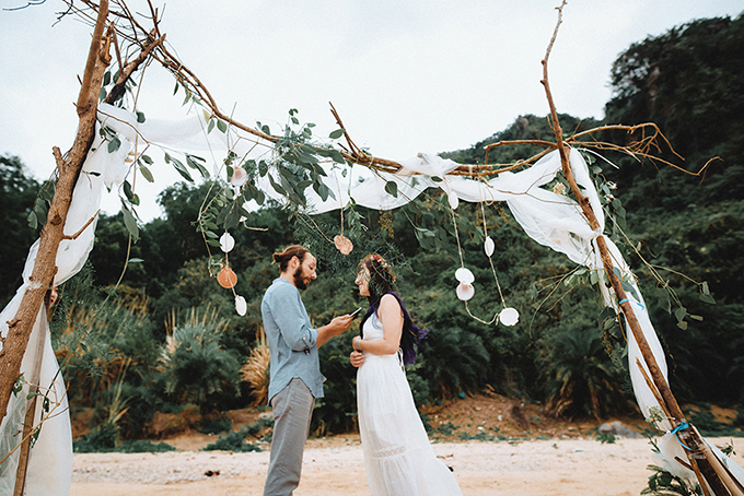 Cặp đôi trao nhau lời thề nguyền với sự làm chứng của wedding planner rồi thư giãn, ngắm bình minh tại bãi biển.