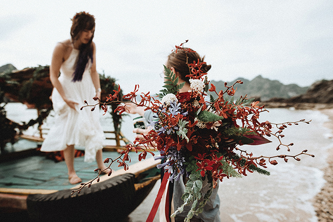 Sau đó, họ được đưa lên một chiếc thuyền đánh cá phủ hoa tươi đầy màu sắc để vào trong một hang động rồi di chuyển tiếp đến bãi biển hoang, nơi được trang trí sẵn sàng cho đám cưới.