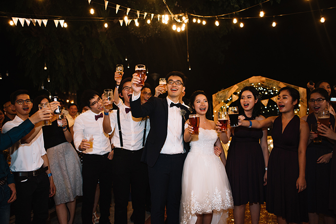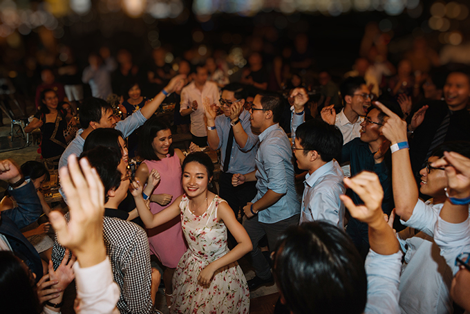 Cô dâu chú rể cùng khách mời đã “quẩy” đến gần sáng trong điệu nhạc vui nhộn.