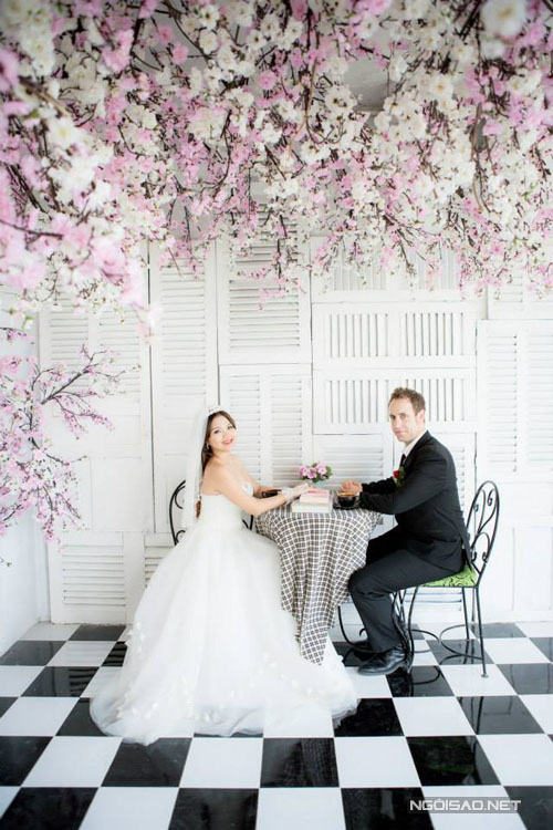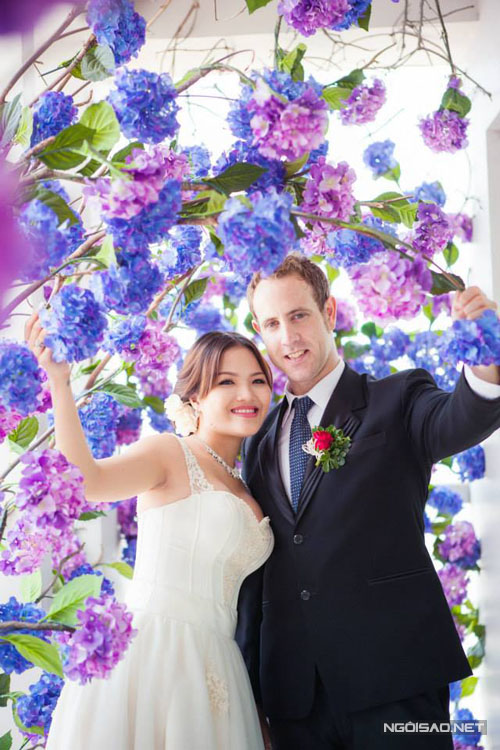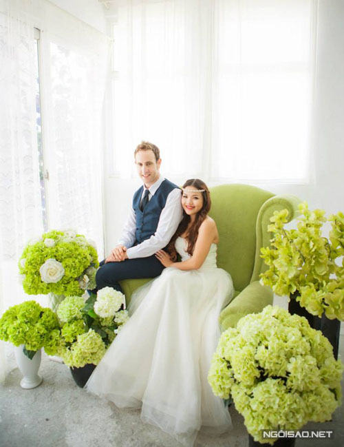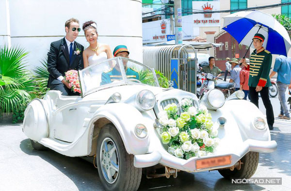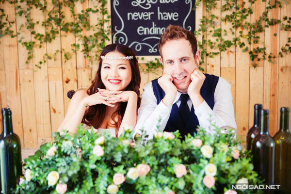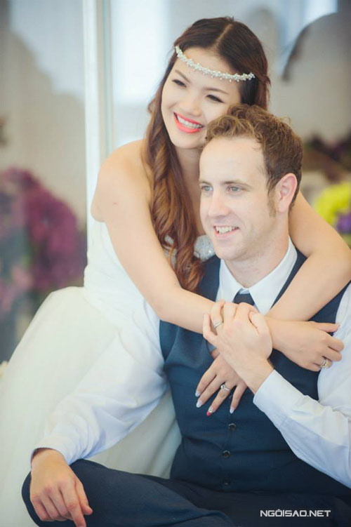Cặp đôi rạng rỡ trước tiệc mời tại một nhà hàng tại TP HCM. Sau đám cưới, Dorje về Australia để chuẩn bị giấy tờ và các thủ tục để đón vợ sang định cư.