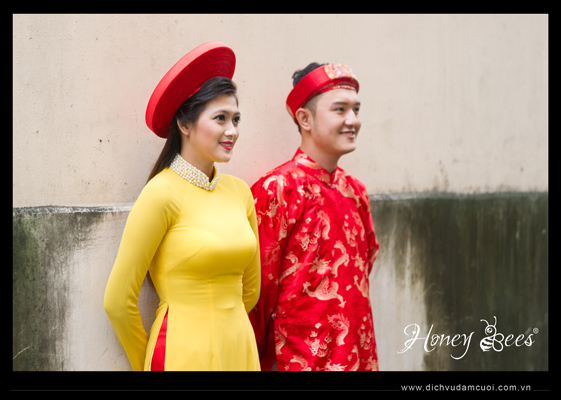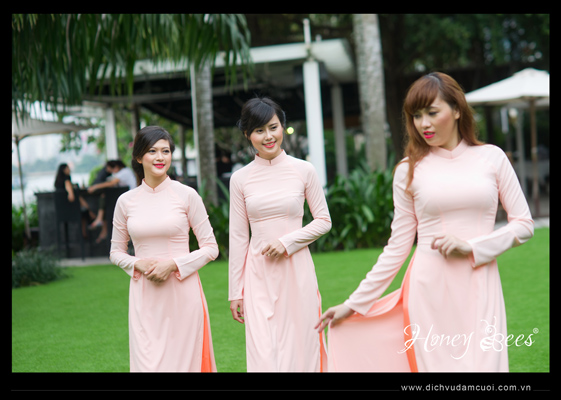 Đến với Honey Bees, bạn còn được tư vấn về cách phối áo dài sao cho phù hợp. Với phương châm luôn mong muốn đem lại sự hài lòng cho khách hàng nên chúng tôi thường xuyên may mới lại những mẫu áo dài bên công ty đã cung cấp, vì "xoay đi, xoay lại" thì cũng chỉ có ngần ấy chất liệu vải và màu sắc đó, nên vậy khách hàng cứ yên tâm về chất lượng của áo, có thể bạn nhìn thấy hình bên mình đã đăng lên lâu rồi nên nghĩ áo chắc đã "cũ" nhưng hãy "thử" đến xem những mẫu "cũ" ấy biết đâu bạn sẽ thích. Hiện tại áo dài cho thuê dành cho dâu phụ, rễ phụ bên công ty có khoảng hơn 40 mẫu nữ, 20 mẫu nam với đa dạng về màu sắc, chất liệu, cho các cặp đôi chuẩn bị cưới và bạn bè của mình "tha hồ" lựa chọn. Người ta nói "trăm nghe không bằng mắt thấy" nên vậy nếu các bạn có thời gian hãy đến xem thử mẫu, hoặc muốn báo giá thì inbox qua cho mình nhé. Phần này dành cho các bạn muốn biết giá nhanh gọn lẹ kiểu "mì ăn liền" thì gọi đến số điện thoại công ty 0916956338 or 0835088306 - 0835088307 (từ 9am - 8pm) để được báo giá.