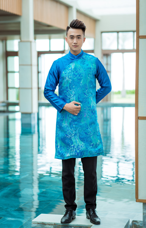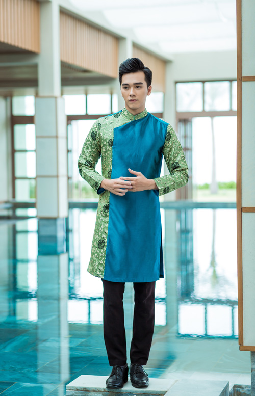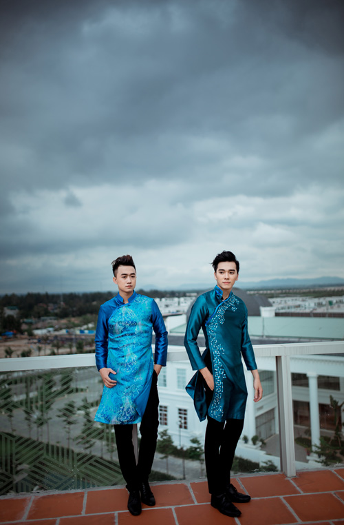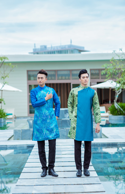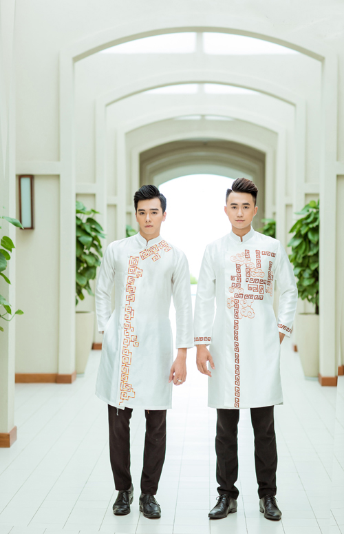 Xu hướng chọn áo dài cưới cho các tân lang đang ngày càng phổ biến, nhất là trong các nghi thức gia tiên truyền thống. Áo cho các chàng thường có phom dáng đơn giản, cách tân bằng kiểu vạt ngắn, để thoải mái trong việc di chuyển.
