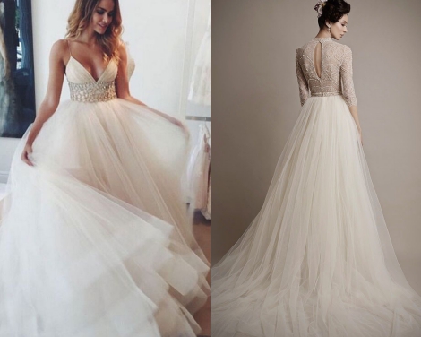 Đây là một trong những chất liệu đầu tiên trong lịch sử được sử dụng để may váy cưới. Với đặc điểm mềm mại, nhẹ và tạo phom váy tốt, vải tulle có thể may hầu hết các dáng váy. Váy cưới tulle phù hợp với tất cả dáng người bởi khả năng co giãn và định hình cơ thể hoàn hảo.