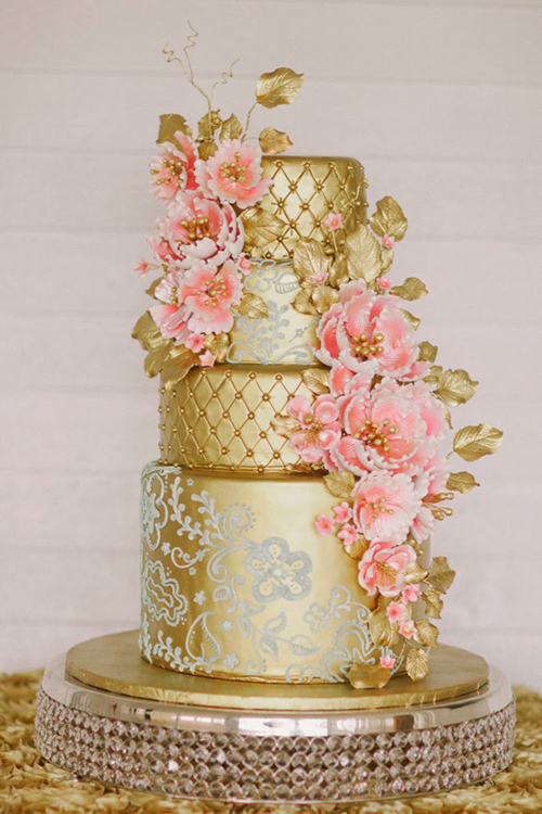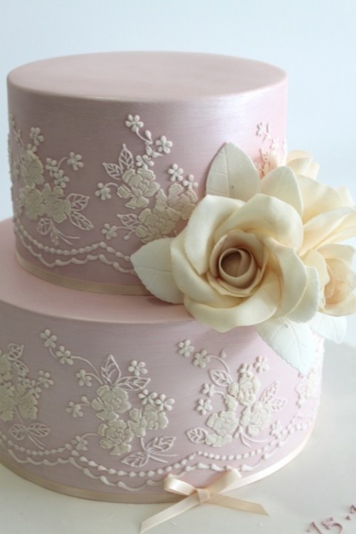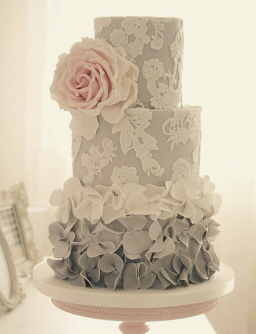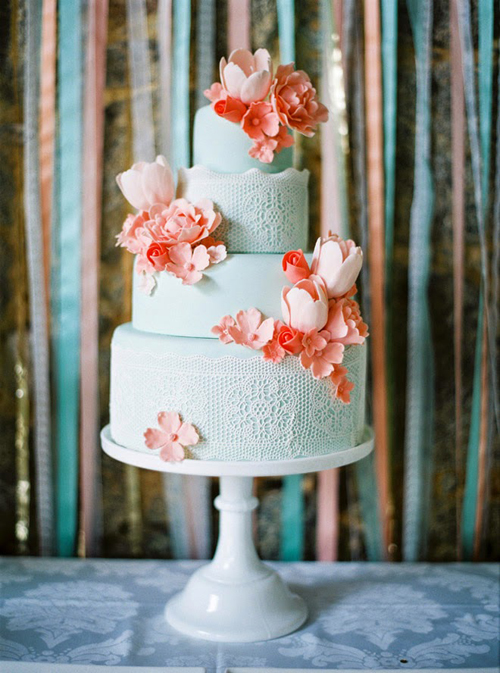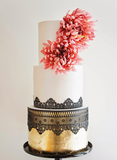 Họa tiết ren không chỉ phù hợp với bánh cưới màu trắng mà có thể kết hợp với nhiều màu khác như: xanh, hồng, vàng đồng, đen, ghi...