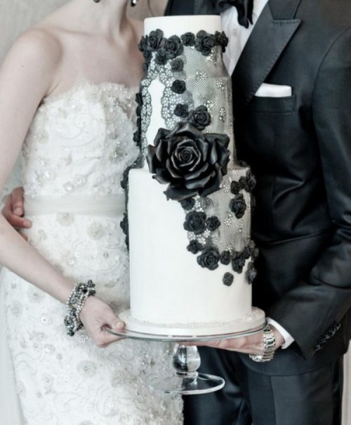 Bánh cưới không còn bó gọn trong màu trắng cổ điển mà đa dạng hơn với những sắc màu phong phú như đen, xanh, tím, hồng...