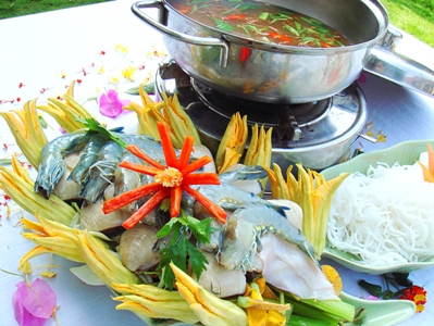 Món khai vị có thể là: soup măng cua, soup hải sản, gỏi tôm, gỏi ngó sen, mực chiên xù, chả giò hải sản, gà hấp chanh muối … Nếu bạn thích món ăn mang chút vị Tây Âu có thể là nghêu bỏ lò, salad tôm cocktail, bacon cuộn cá…