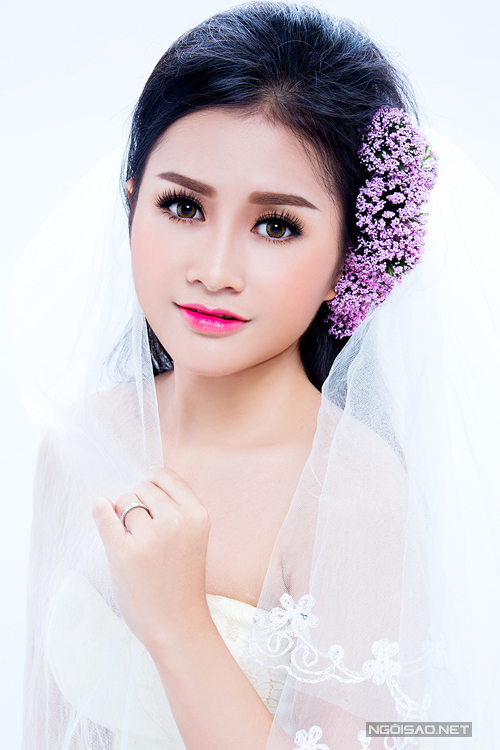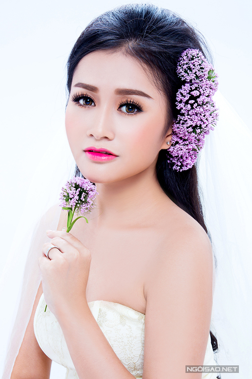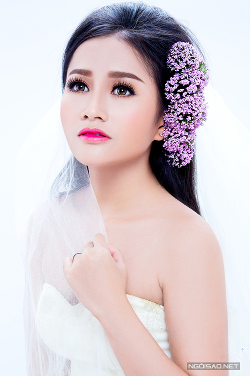 Một nhành hoa nhỏ điểm trên tóc mang đến sự dịu dàng, tươi trẻ cho cô dâu.