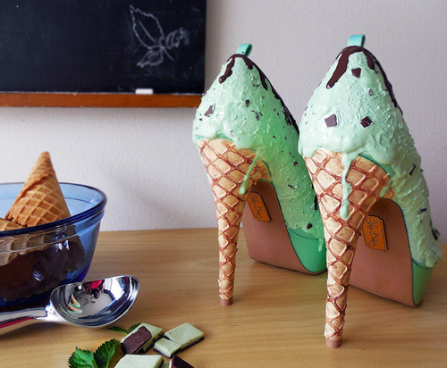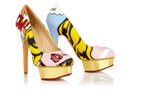 Thời trang pop art nguyên bản thường là các mẫu áo, váy in các hình ảnh quen thuộc từ truyện tranh, hoạt hình. Các cô dâu cá tính cũng có thể đưa loại hình nghệ thuật này vào đám cưới bằng những mẫu giầy cưới "không giống ai".