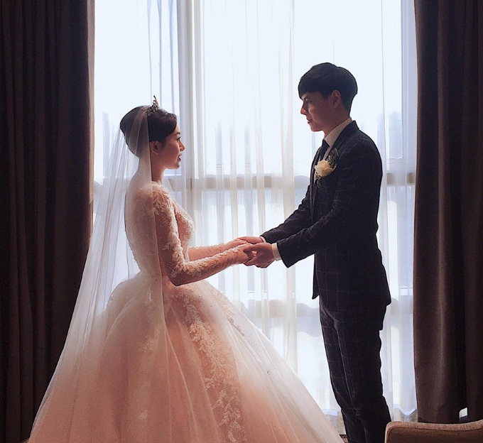 Trong lễ cưới vừa qua, Trà My chọn cho mình chiếc váy cưới của thương hiệu áo cưới Calla Bridal. Đây là thương hiệu từng thiết kế váy cưới cho "cô gái thời tiết" Mai Ngọc, Hoa hậu Thu Ngân, diễn viên Đan Lê...