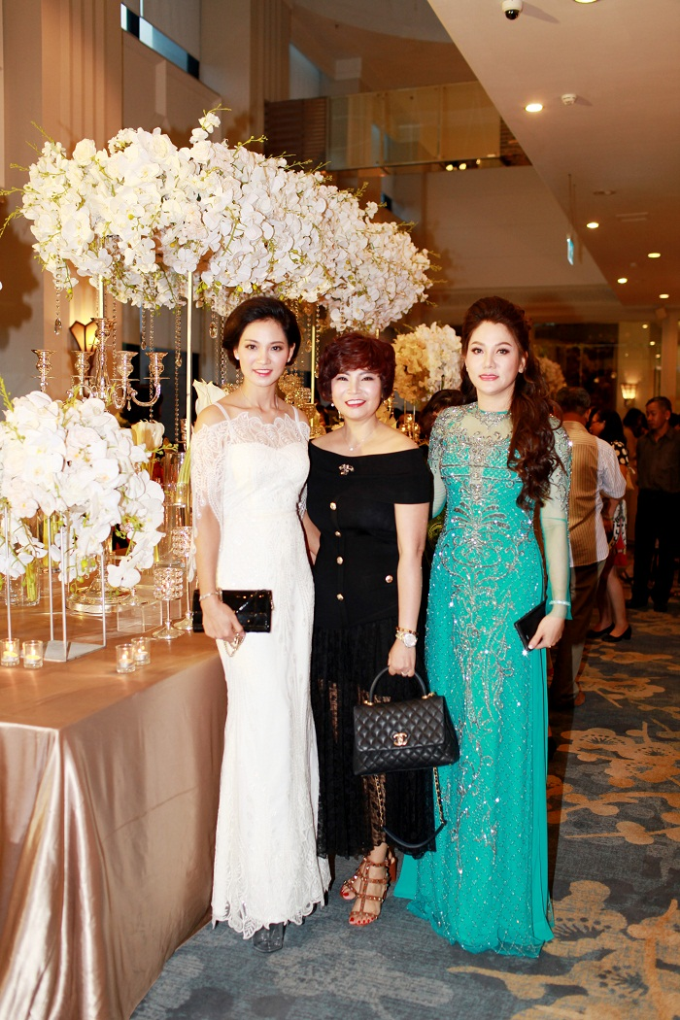 Hoa hậu Xuân Hương (áo dài xanh) rạng rỡ trong ngày vui của con gái.