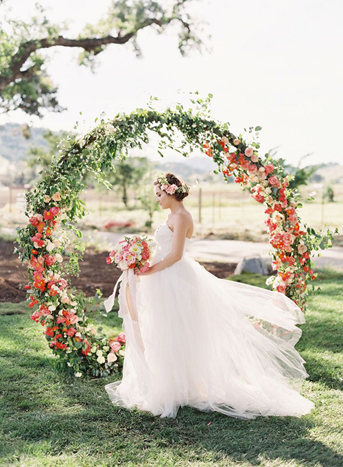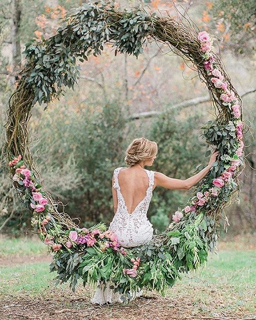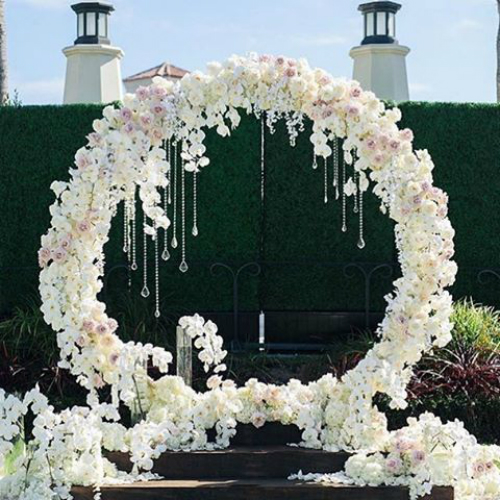 Cổng hoa hình tròn thẳng đứng độc đáo cho đám cưới ngoài trời