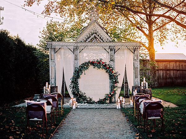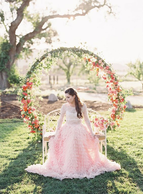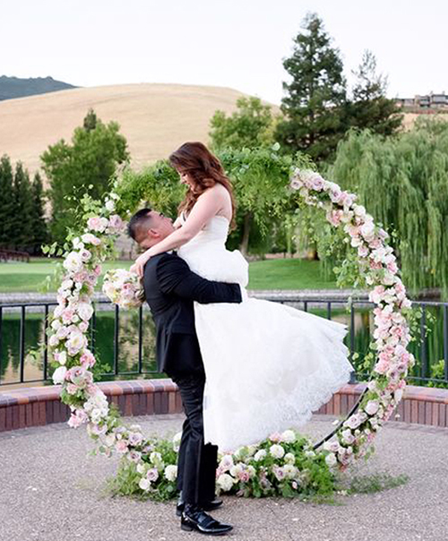 Cổng hoa cưới hình tròn biểu trưng cho cuộc hôn nhân viên mãn, hạnh phúc.