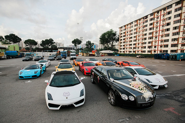 Đại gia Singapore đón dâu bằng 12 siêu xe Lamborghini