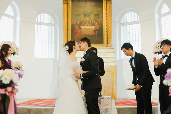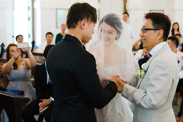 Sau lễ đón dâu, cặp đôi đến nhà thờ để tiến hành nghi lễ trao lời nguyện thề trước cha xứ. Tiệc mừng được tổ chức ở một khách sạn 6 sao tại đại lộ Orchard vào buổi tối cùng ngày.