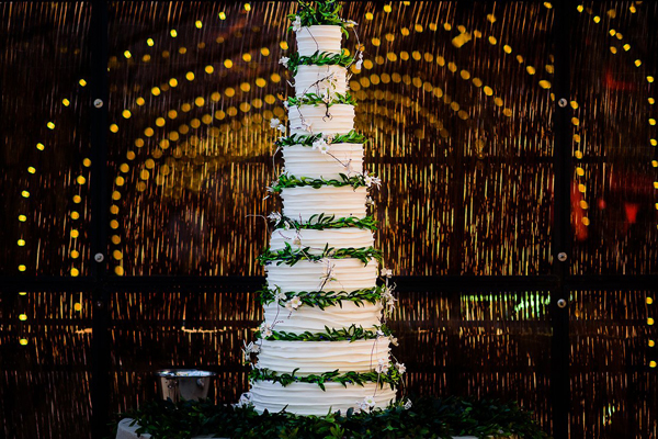 Bánh cưới 10 tầng với phong cách rustic có chiều cao ấn tượng.