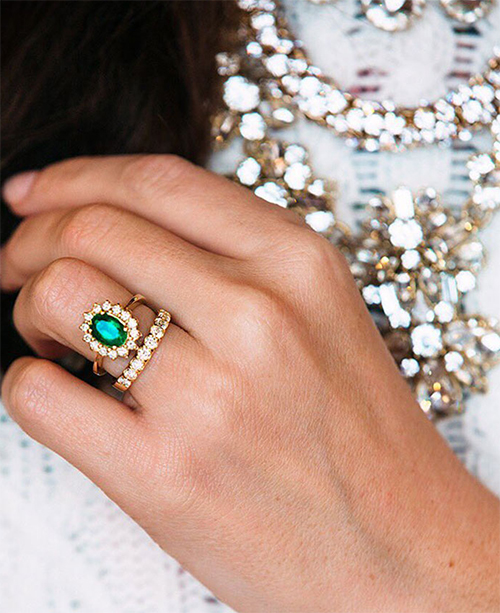 Chiếc nhẫn của cô dâu với màu xanh mang ý nghĩa vĩnh cửu, cũng là sắc màu của thông xanh và biểu tưởng cho lễ Giáng sinh.