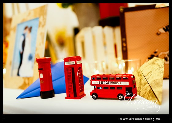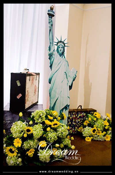 Biểu tượng của nhiều nước cùng xuất hiện trong không gian đám cưới.