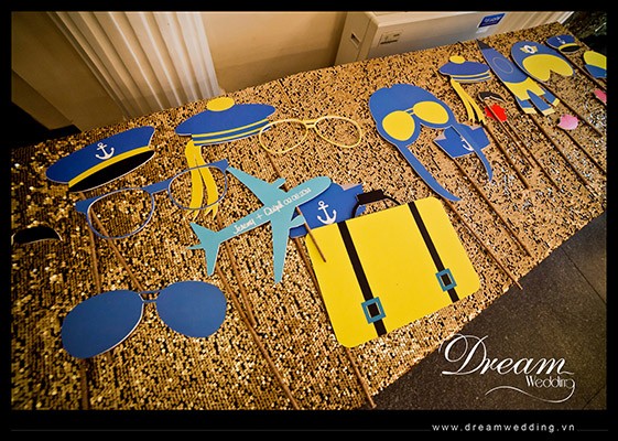 Những dụng cụ chụp hình đáng yêu mà uyên ương chuẩn bị cho khách mời.