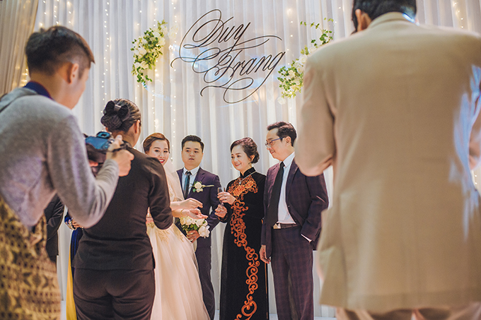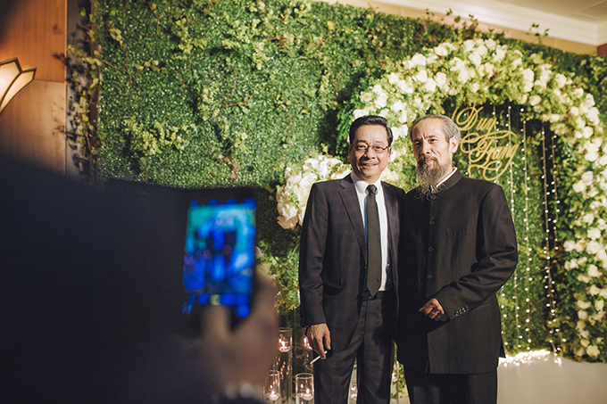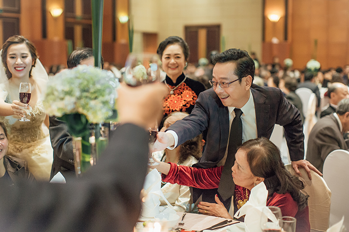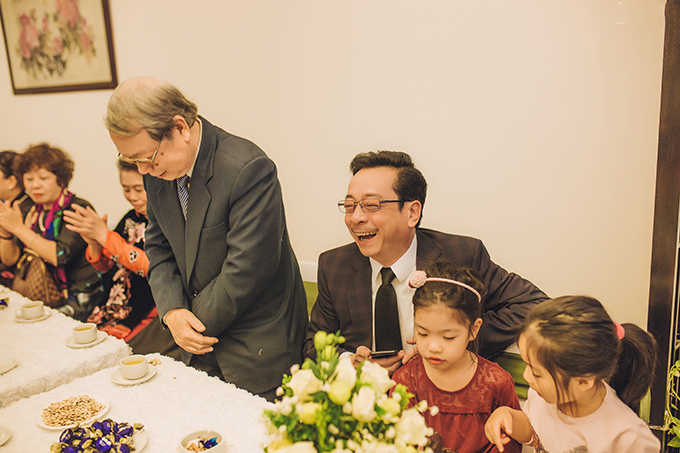 Trong giây phút cám ơn quan viên, khách quý hai họ, nhiều người đã nói vui rằng NSND Hoàng Dũng đang đứng ra "phán xử" cho con trai, giống một tình tiết trong phim Người phán xử.