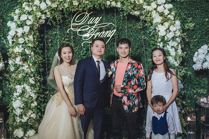 Tiệc mừng của đôi uyên ương có sự góp mặt đông đảo của các nghệ sĩ, diễn viên nổi tiếng. Danh hài Xuân Bắc đến chung vui cùng cô dâu, chú rể từ sớm.