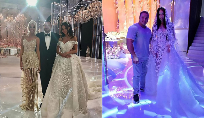 Đầu tiên, cô dâu Ksenia mặc một bộ váy cưới quyến rũ với lớp vải ren cầu kỳ và đến nửa đêm, Ksenia thay một bộ váy khác tinh tế không kém, đồng thời làm tôn lên vòng một bốc lửa của nữ người mẫu.