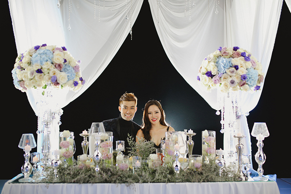 Dạ tiệc tối của họ cũng được trang trí theo tông màu trắng tinh khiết, tươi trẻ.
