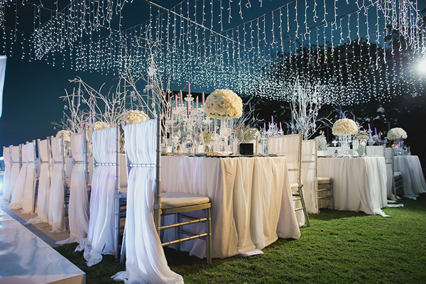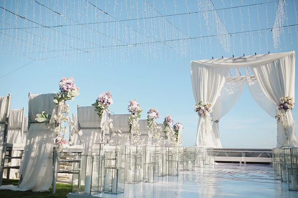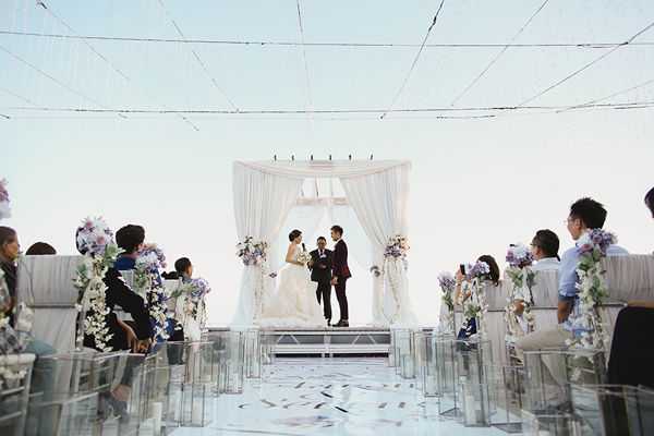 Aaron và Serene mong muốn một đám cưới lãng mạn, tinh tế theo phong cách Châu Âu với màu trắng tinh khôi. Phần lễ cưới chính diễn ra ở không gian ngoài trời hướng ra biển. Dạ tiệc diễn ra vào buổi tối cùng ngày.