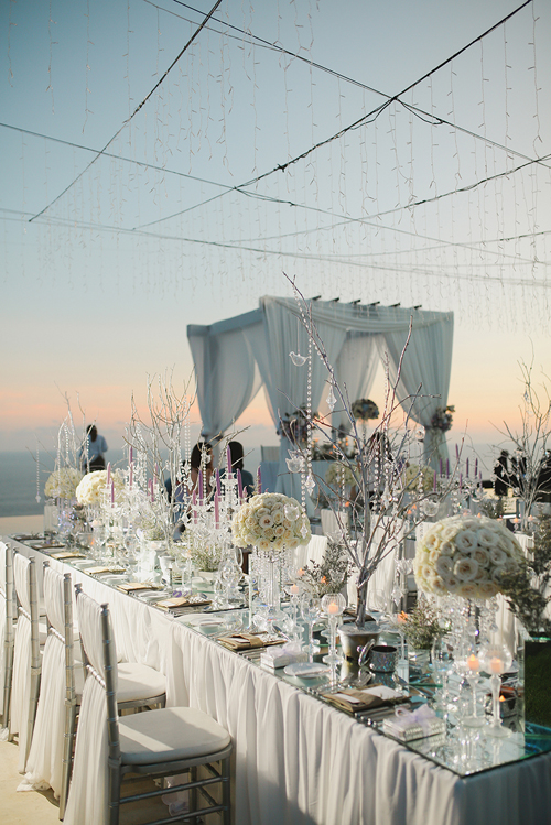 Với bàn tiệc dài hướng ra biển, khách mời có thể vừa dùng bữa vừa ngắm hoàng hôn nên thơ. Là người khá cầu toàn, kỹ tính, cô dâu Serene đã chăm chút cho từng chi tiết nhỏ nhất của đám cưới.