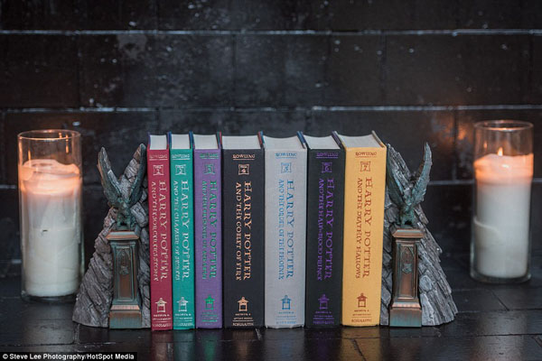 Thay vì trang trí bằng hoa tươi như những đám cưới thông thường, cặp đôi đã sử dụng các tập truyện Harry Porter để nhấn nhá cho bữa tiệc.