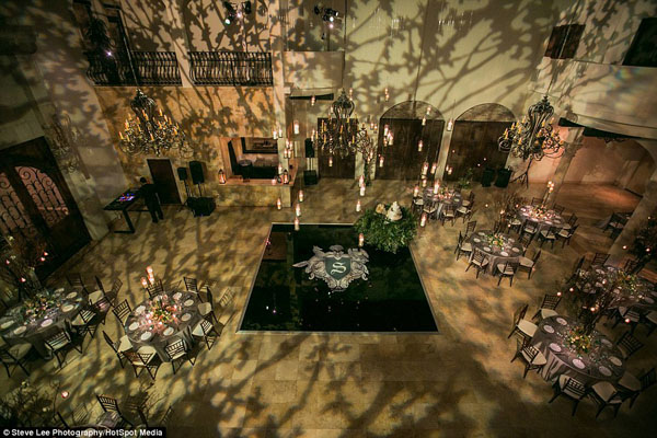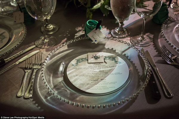 Phù hiệu của ngôi trường Hogwart được đặt ở chính giữa khu vực nơi cô dâu và chú rể trao nhau điệu nhảy đầu tiên.