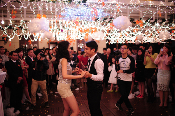 Hà Vân và Tuấn Linh đã dành tặng cho khách mời tiết mục nhảy bachatcha đầy sôi động trong đám cưới.