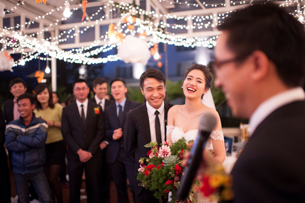 Tuấn Linh, kiến trúc sư, và Hà Vân, wedding planner, đã tổ chức lễ cưới ấm cúng với sự góp mặt của 50 khách mời là họ hàng và bạn bè thân thiết nhất.