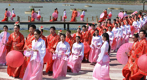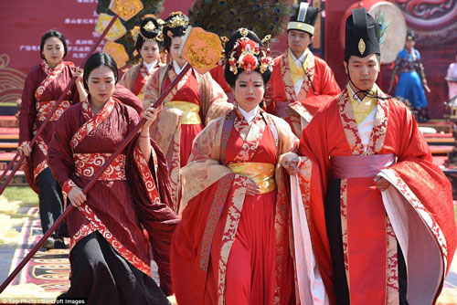 Đám cưới tập thể theo tập tục 2000 năm trước tại Trung Quốc