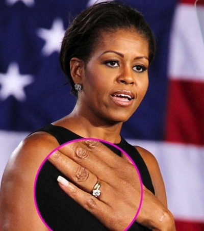 Theo chia sẻ trên Huffington Post, Barack Obama đã lấy cớ tổ chức tiệc ăn mừng vượt qua kỳ thi để mời Michelle dự một bữa tối tràn ngập ánh nến và nói lời cầu hôn. Ông bí mật đưa nhẫn cho người phục vụ lúc bắt đầu bữa ăn và khiến người yêu bất ngờ khi phát hiện chiếc nhẫn kim cương trong món tráng miệng. Trong ảnh là cận cảnh chiếc nhẫn mà Barack Obama dành tặng Michelle.