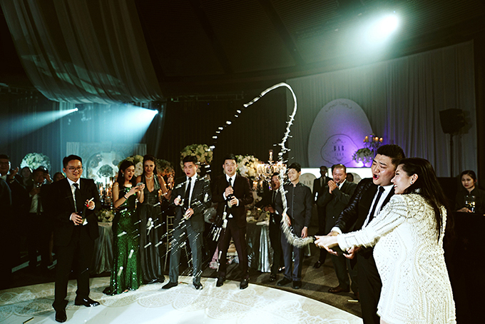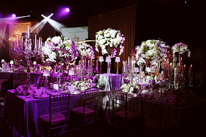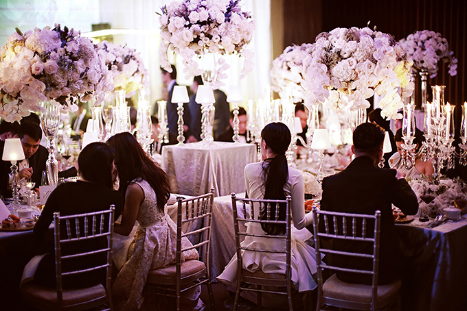 Đôi uyên ương không tiếc tiền chi cho phần tiệc tối với các hạng mục trang trí hoành tráng. Khách mời được phục vụ các món ăn nổi tiếng Nhật Bản và Trung Quốc bởi bếp trưởng hàng đầu Singapore.