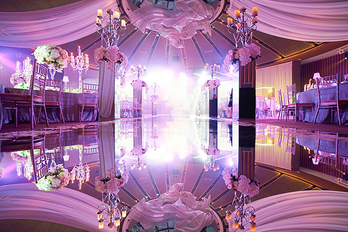 Sàn nhà tráng gương tạo hiệu ứng không gian mở độc đáo. Gần 130 khách mời có mặt để chung vui với Wei Wei và Chen Herng.