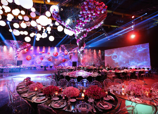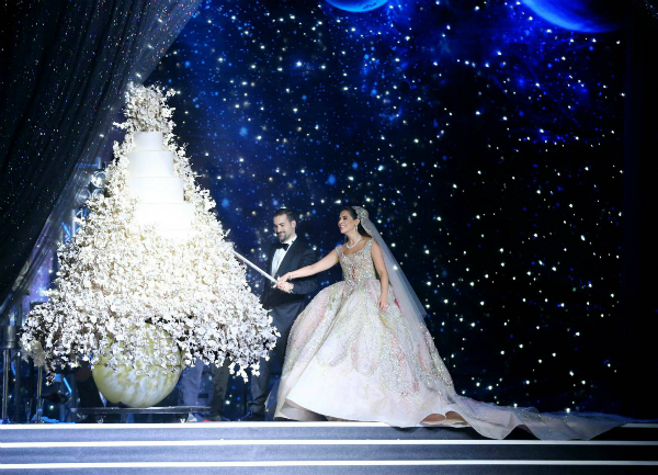 Rayan Osseiran và Reem Mouazzen đã khiến các khách mời choáng ngợp bởi không gian vũ trụ bao la trong tiệc cưới.