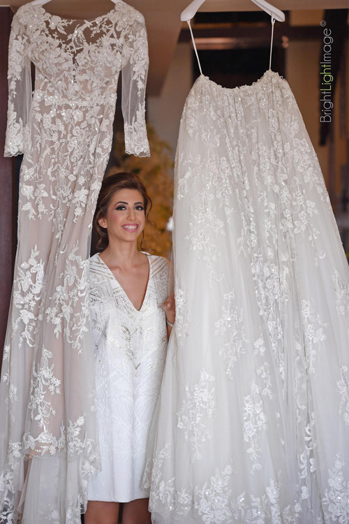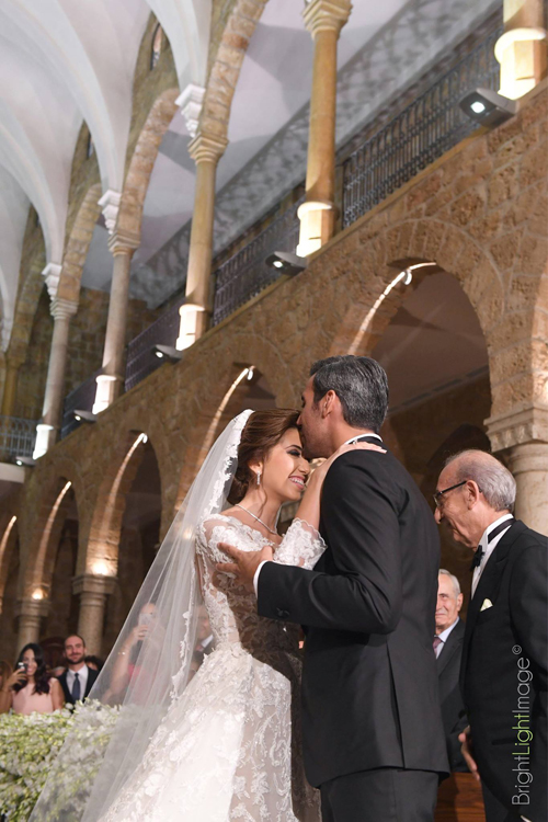 Rhea Kanaan rạng rỡ trong bộ soiree của nhà thiết kế danh tiếng Zuhair Murad trong lễ thành hôn tại nhà thờ. Đây là mẫu thiết kế 2 trong 1 với phần đuôi váy có thể tháo rời.