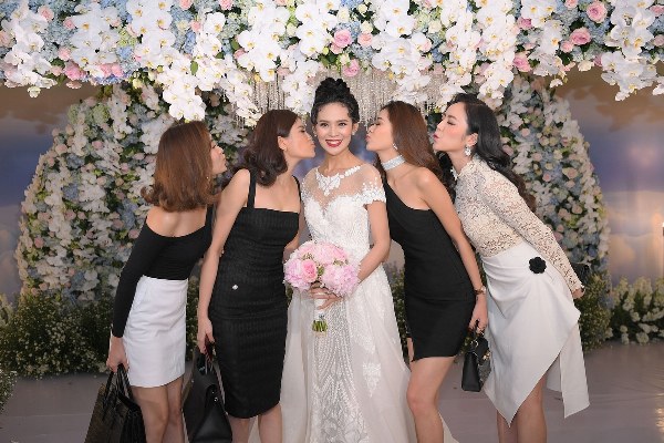 Dàn Hoa hậu, Á hậu của cuộc thi Hoa hậu Hoàn Vũ đến chúc mừng vợ chồng Hoa hậu Sang Lê - Việt Anh